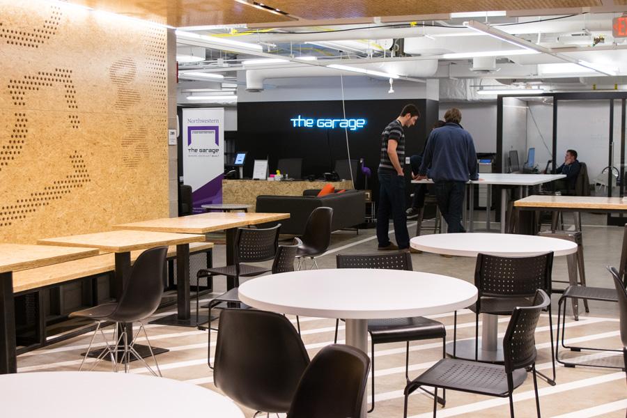 The Garage in Evanston- This is the core of The Garage’s operations. This space opened in June 2015 to help students build new ventures and explore entrepreneurship. This 11,000 sqft space includes a large classroom that doubles as a hall for guest speakers, a cafe, multiple conference rooms, an AR/VR and prototyping lab, and a section with desks for Resident startups and EIRs.